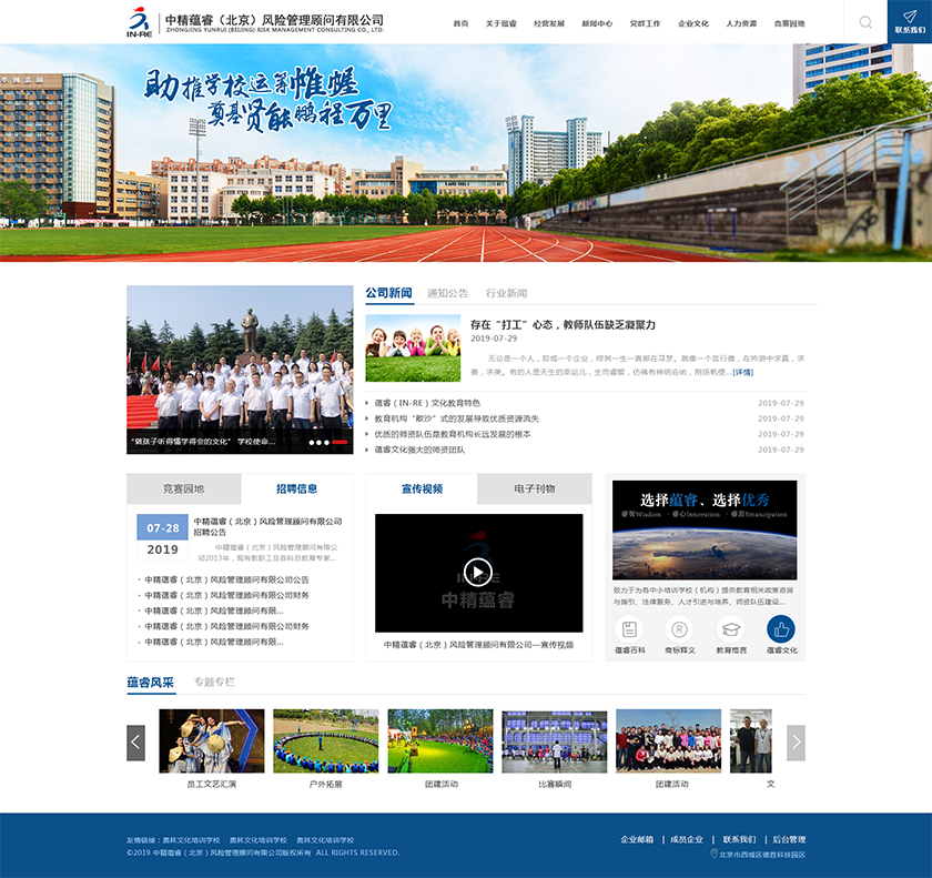 Project Description 中精蕴睿(北京)风险管理顾问有限公司2013年,现有教职工及各科目教育专家80多人,致力于为各中小培训学校(机构) 提供教育相关政策咨询与指引、法律服务、人才引进与培养、师资队伍建设与培训、教学教研与学科创新、市场营销企划、文化 理念塑造与品牌输出的专业化教育管理全方位的综合服务。 Official website address 东营http://in-re.com/ I want to share